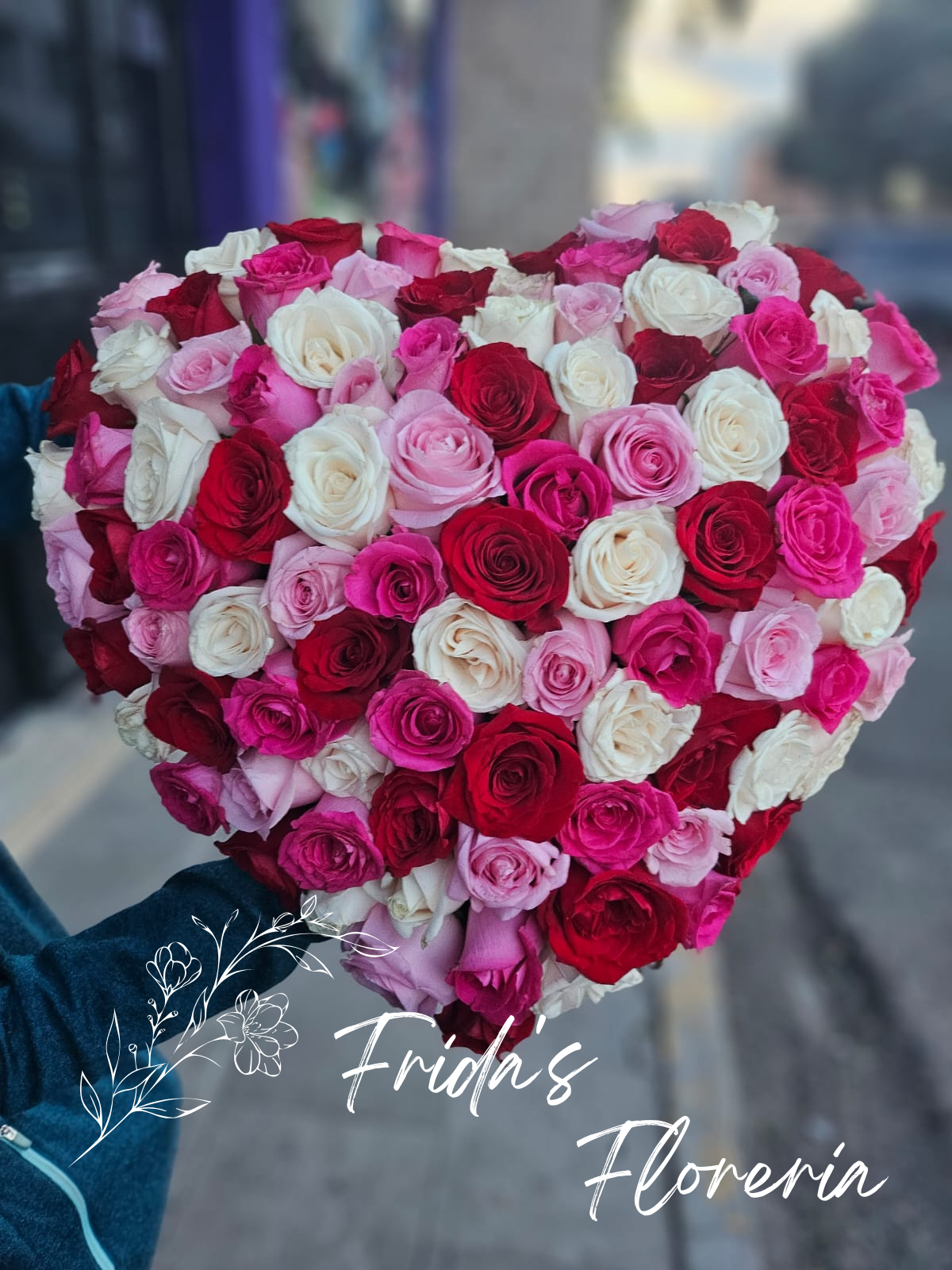 Hermoso corazon de 100 rosas rojas, y rosas (estas pueden variar segun la disponibilidad de colores en el dia) mixto.