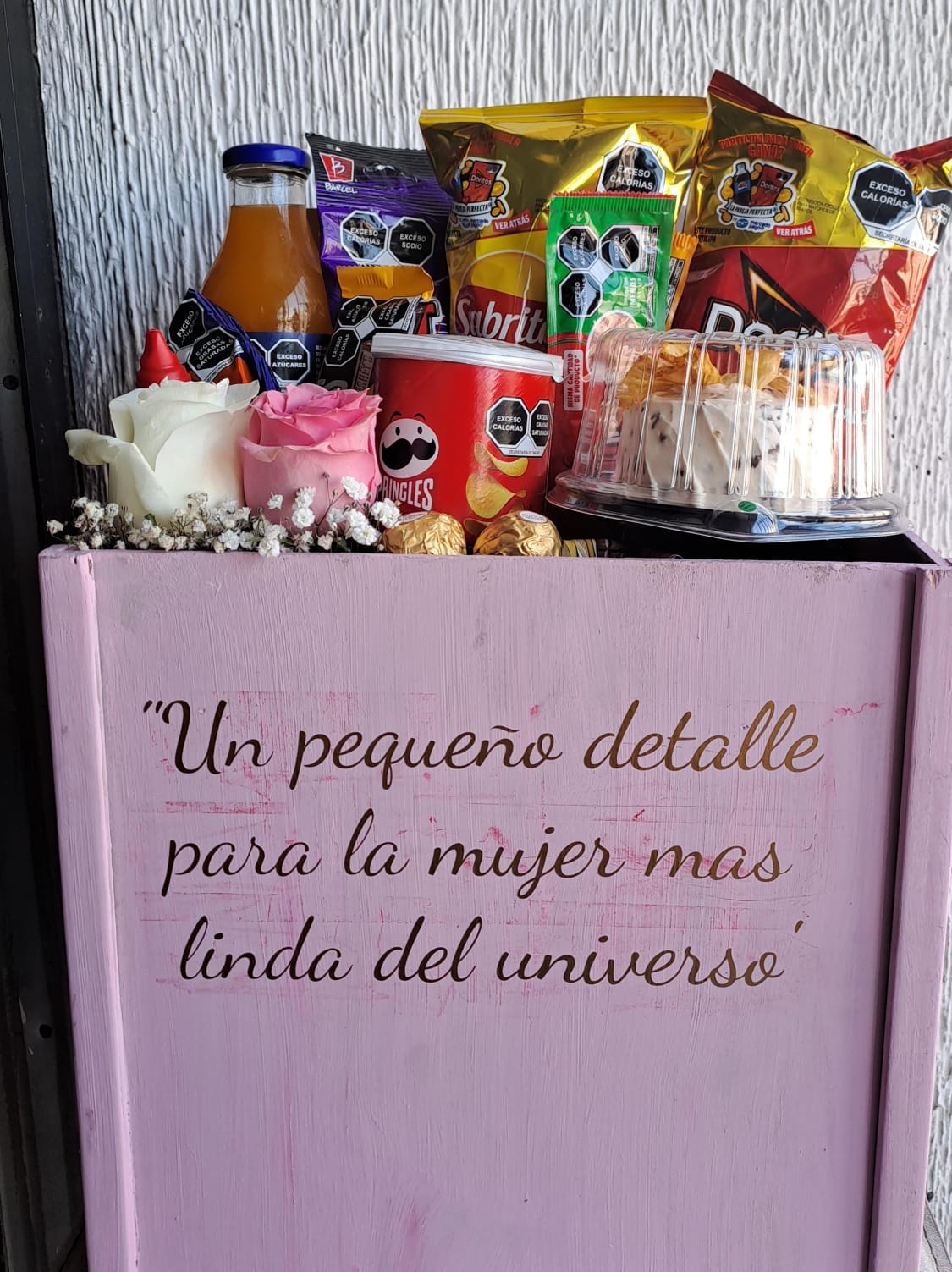 Caja especial para cumpleaños, contiene un pastel individual y una variedad de dulces ademas de dos rosas mixtas para alegrar el corazon de los festejados.