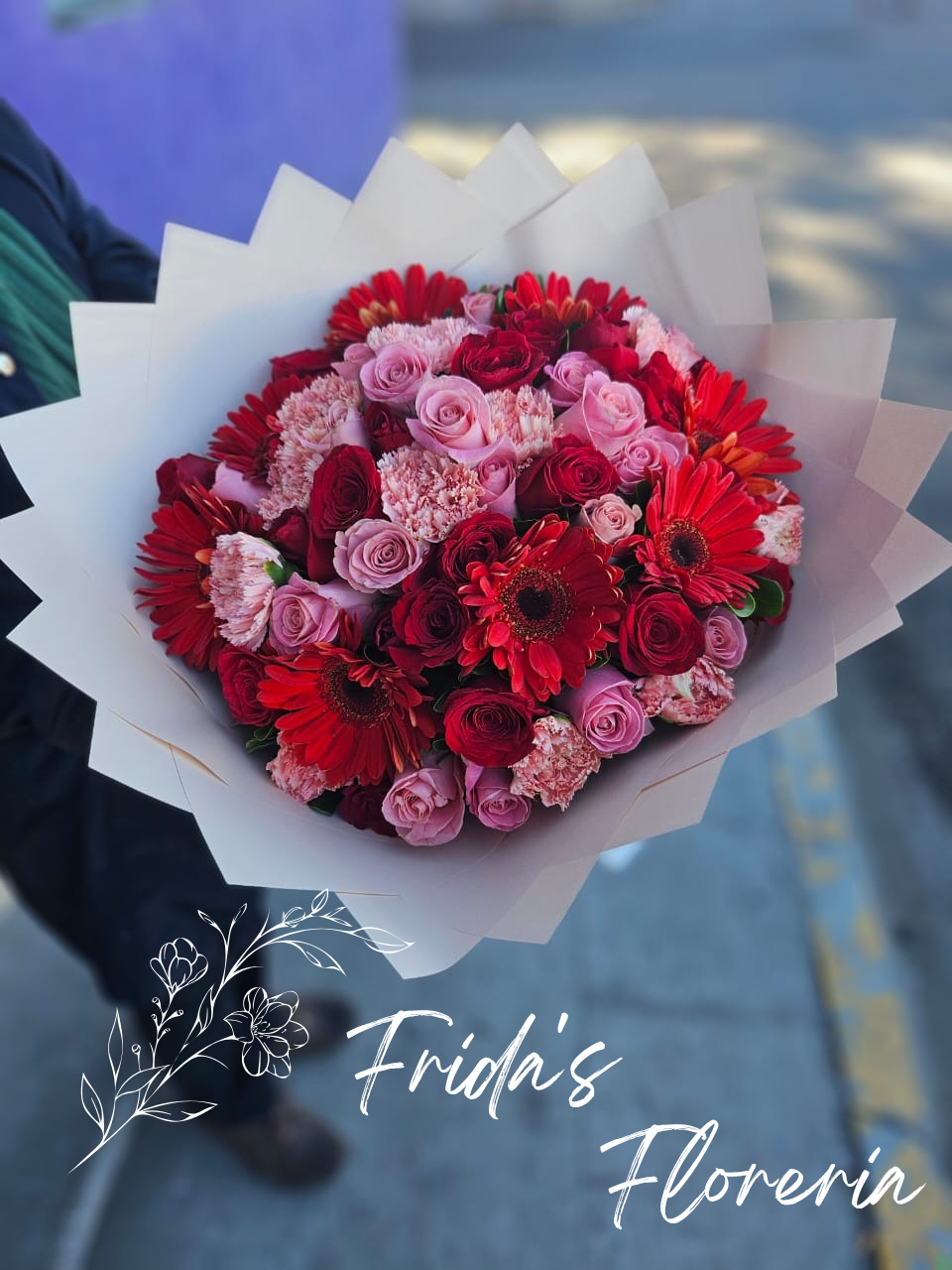 Hermosa combinacion de flores entre gerberas,claveles y rosas, el rojo y el rosa quedan muy bien en conjunto, asi que es ideal para captar la atencion de cualquiera.
